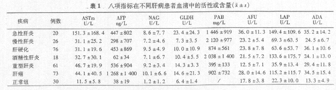 八项生化指标在肝病诊断中的意义及临床评价